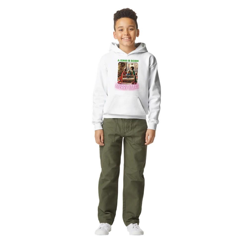 A KING IS BORN Midweight Fleece Youth Hoodie | Gildan SF500B